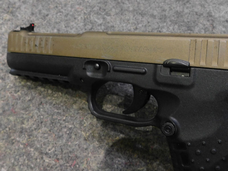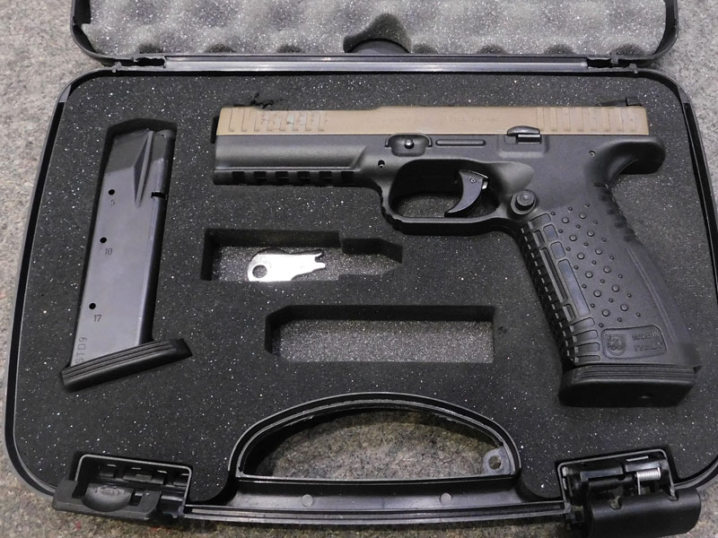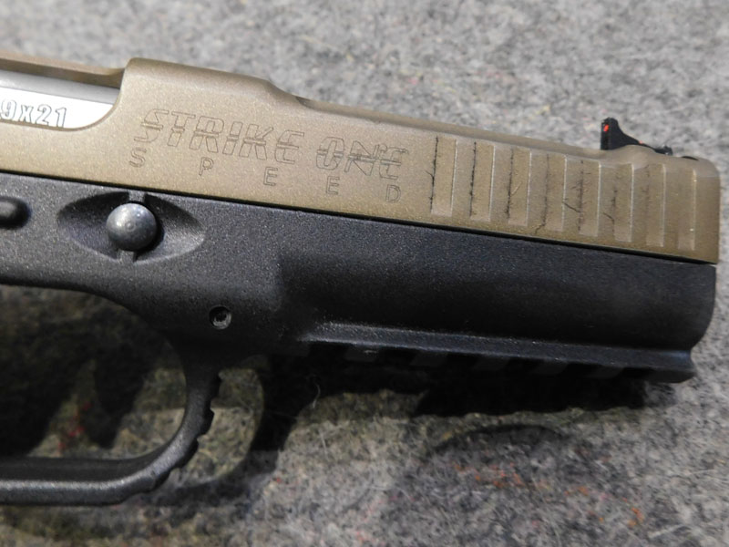 pistola sportiva usata Arsenal Firearms modello Strike One Speed – caricatore bifilare 17 colpi calibro 9 x 21 – canna 5” pollici (127 mm.) – carrello alleggerito con finitura Desert FDE– tacca di mira regolabile – mirino con fibra ottica – valigetta e caricatore di scorta – classificata arma sportiva – meccanica in ottime condizioni, Cerakote non perfetto come da foto