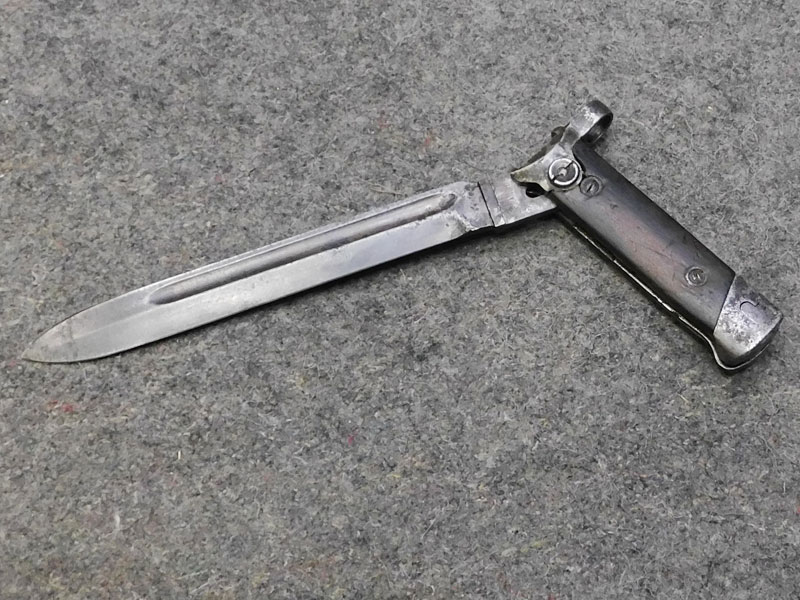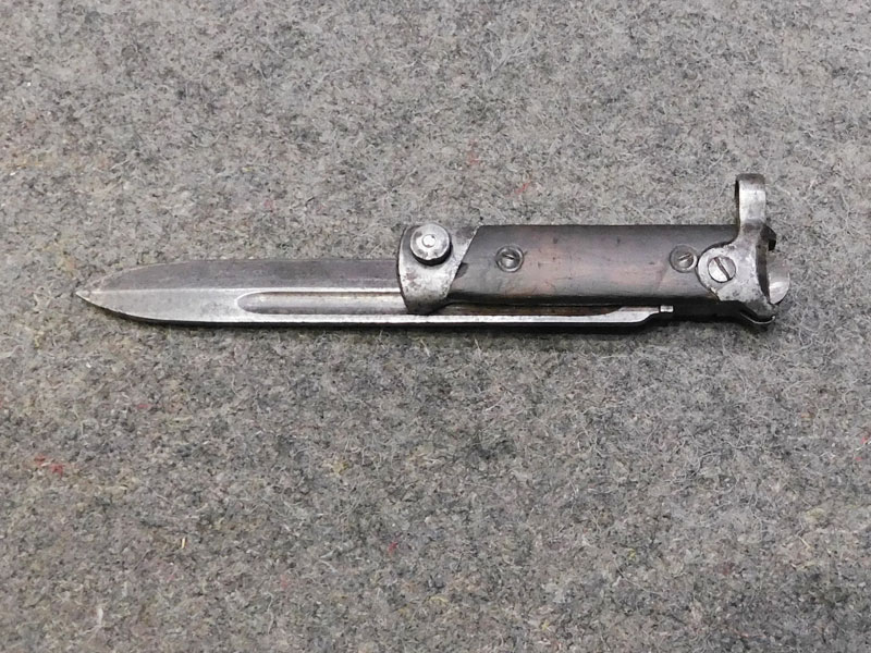 Baionetta pieghevole per moschetto italiano Carcano modello 38 – produttore l: Franchi – pulsante di sblocco di secondo tipo – buone condizioni originali N.B.: necessita porto armi e non è possibile la spedizione diretta a privati