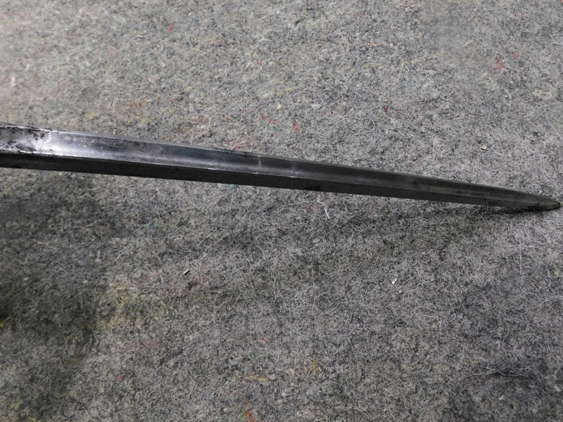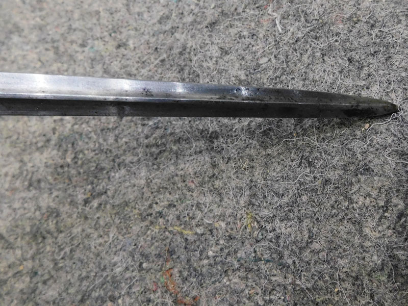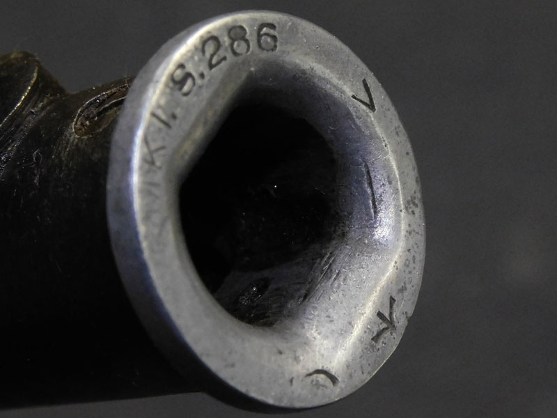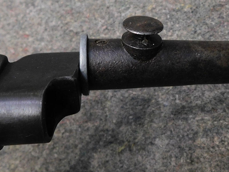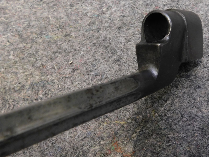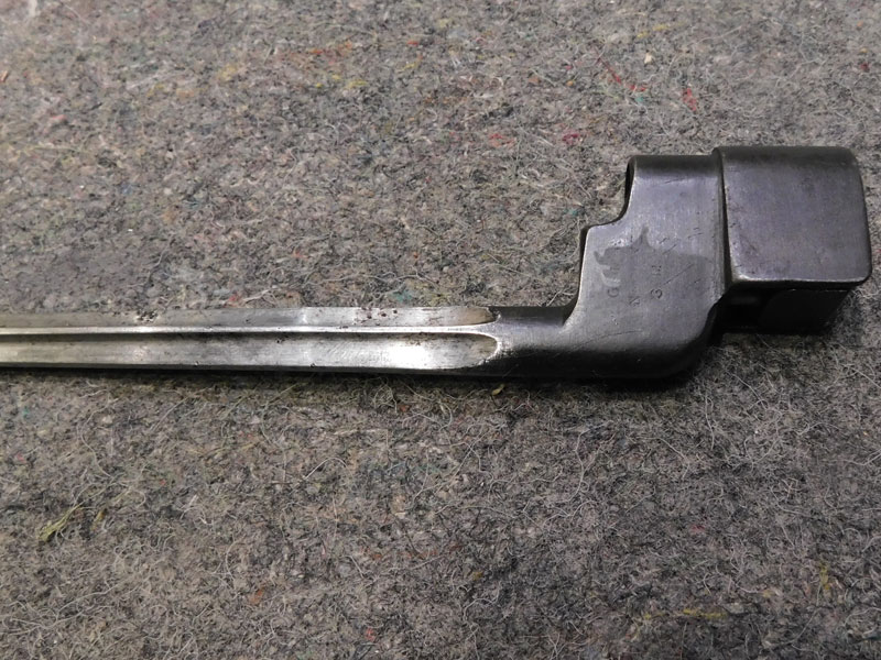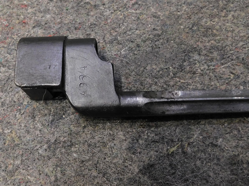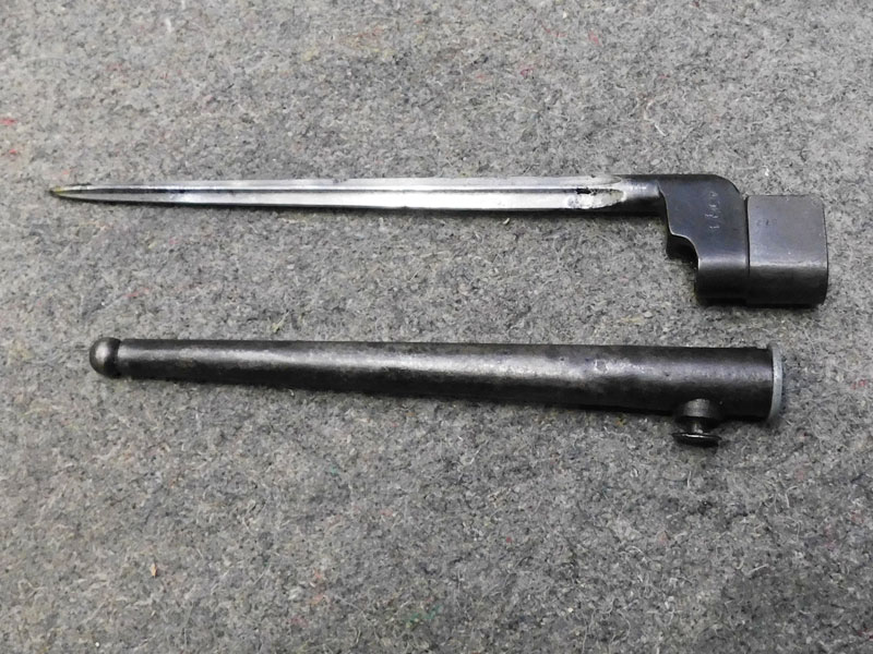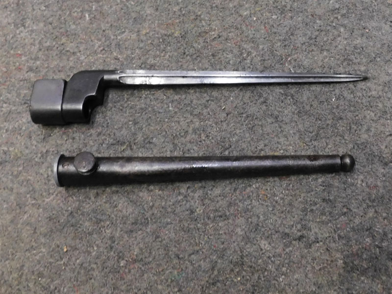 Baionetta inglese modello N°4 MK I per fucile Enfield N°4 – lama cruciforme da 8 pollici – punzonata “GR” e “SM” – pulsante di sgancio punzonato “SM 41” – modello prodotto in soli 75 mila esemplari tra fine 1941 e inizio 1942 dalla sola Singer Manufacturing Co nello stabilimento di Clydebank in Scozia – codice del produttore 57Z – fodero MK 1 in acciaio – punzonato – condizioni molto buone – rara