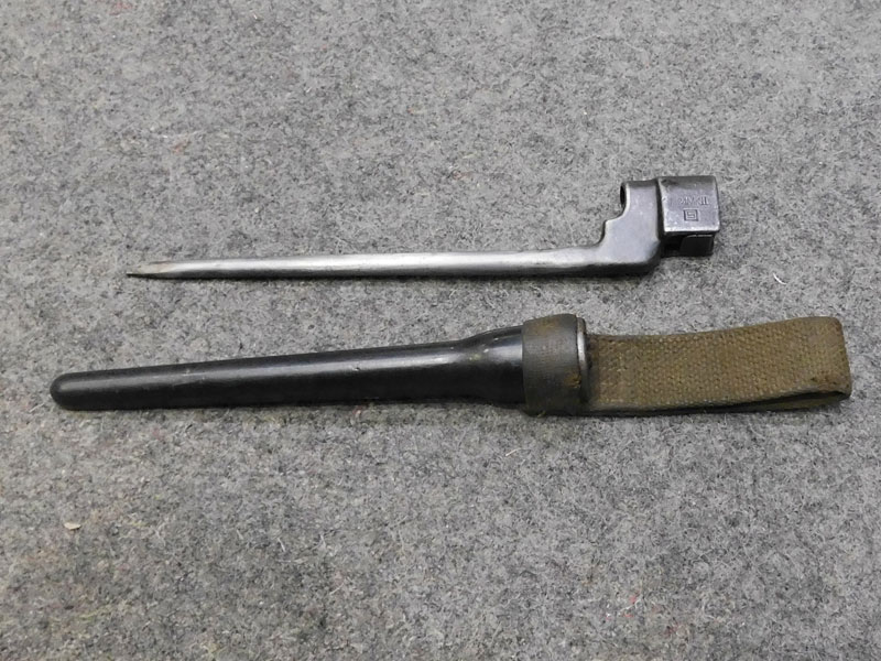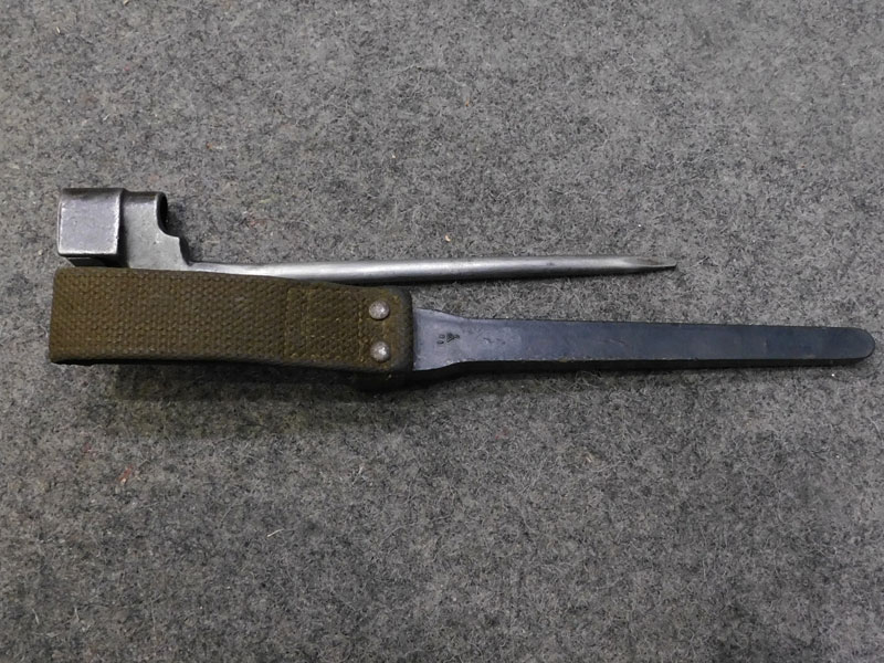Baionetta inglese N°4 MK II per fucile Enfield N°4 – seconda variante – prodotta da Savage U.S.A. tra il 1941 ed il 1942 – pulsante di sgancio punzonato “S” – fodero in materiale plastico “Victory Plastics” prodotto da Beckwith Manufacturing Co con taschetta integrata – baionetta appartenente al lotto Lean & Lease – condizioni molto buone/ottime – ideale per completare il vostro Enfield Savage “U.S. Property”