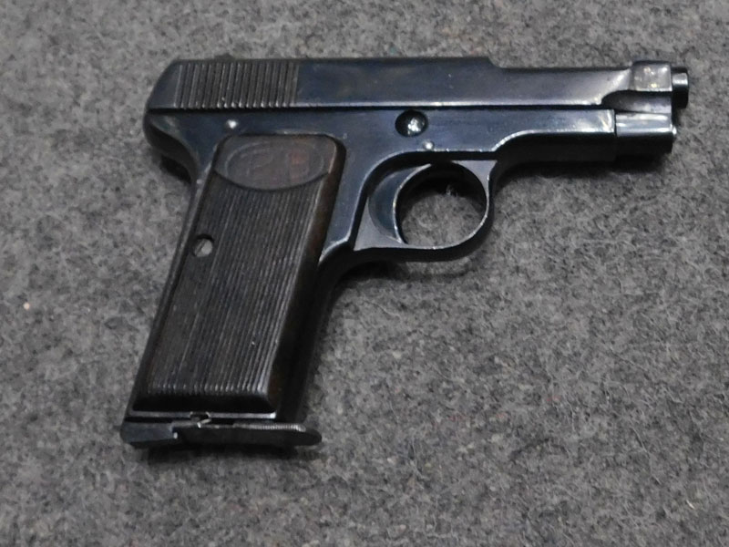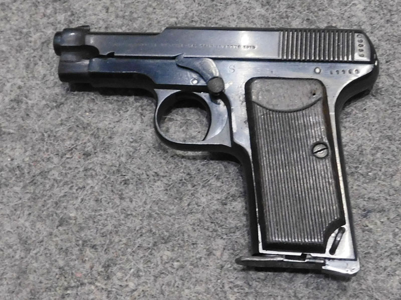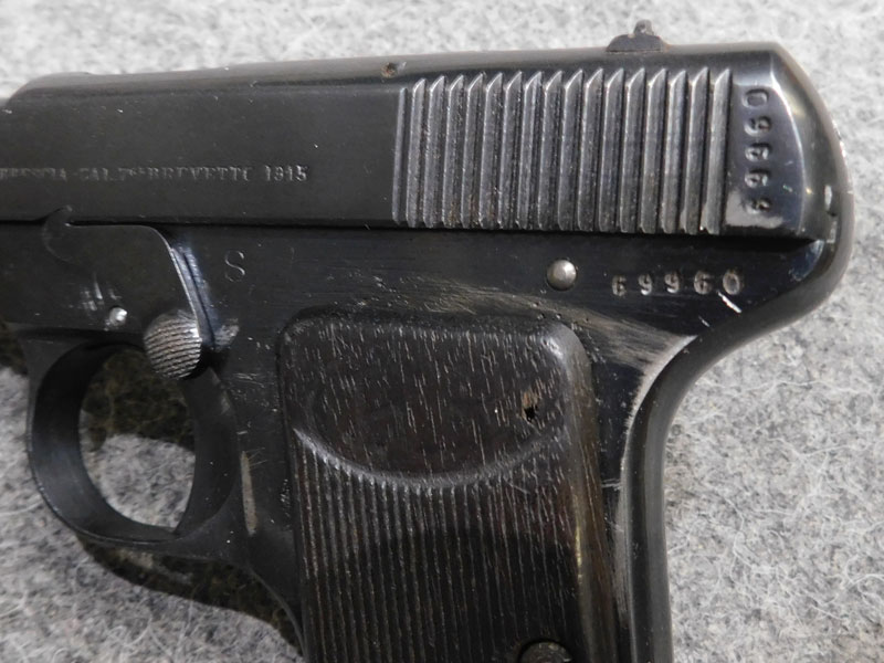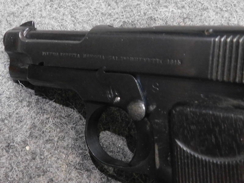 Pistola Beretta 1915/17 (modello 1915 Brevetto 1917) – caricatore monofilare 8 colpi calibro 7.65 – canna 85 mm. – monomatricola – guancette in legno con logo Beretta “PB” – anello per correggiolo – modello prodotto dal 1917 al 1921 in circa 56 mila pezzi – esemplare di fine serie con scritte di terzo tipo – ricondizionata – buone condizioni generali – canna scarsa