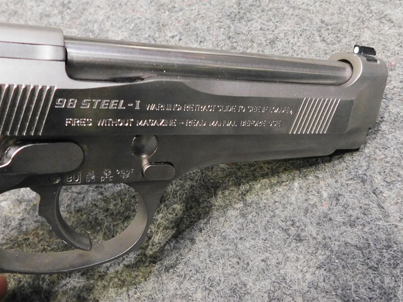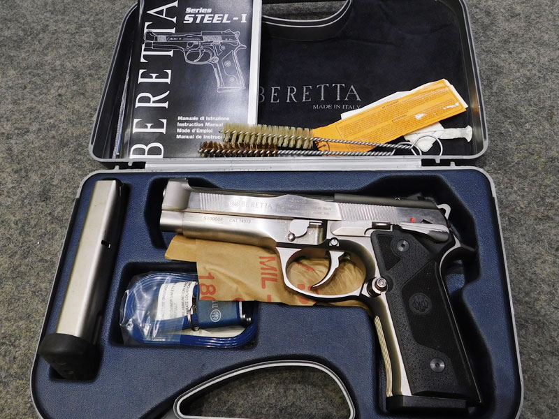 Pistola usata Beretta modello 98 Steel one – caricatore bifilare 15 colpi calibro 9 x 21 – fusto in acciaio inossidabile con impugnatura assottigliata rispetto alla 98 FS classica – carrello in acciaio inox appesantito tipo Brigadier – doppia azione senza abbattimento del cane – sicura sul fusto ambidestra – cane scheletrato – scatto regolabile – tacca di mira tattica fissa Novak – guancette in sintetico – valigetta originale, caricatore di scorta, libretto istruzioni, scovoli, lucchetto di sicurezza – la nonna della Beretta 92 X Performance classificata arma comune – condizioni generali ottime/eccellenti