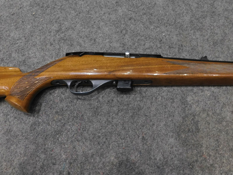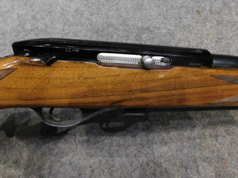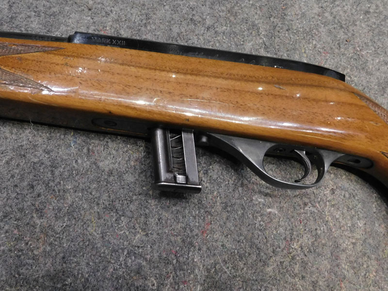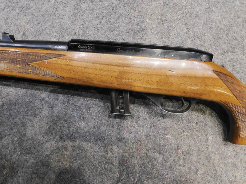 Carabina semiautomatica Beretta Weatherby modello Mark XXII – caricatore 5 colpi calibro 22 l.r. – canna 610 mm. – funzionamento bimodale semiautomatico/colpo singolo – tacca di mira regolabile a fogliette abbattibili – predisposta per montaggio ottica con scina standard da 11 mm. – fornita con un caricatore da 5 colpi e uno da 10 colpi – classificata arma sportiva – meccanica e canna in ottime condizioni, segni d’uso