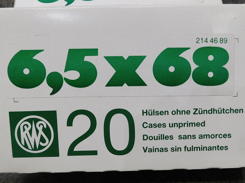 Bossoli per ricarica NUOVI RWS calibro 6.5 x 68 – lotto inscindibile da 100 bossoli – LIBERA VENDITA