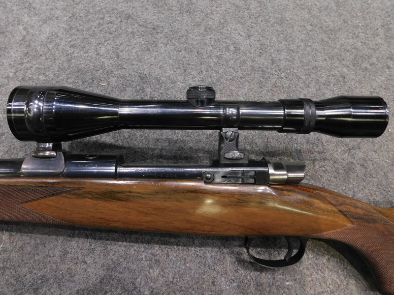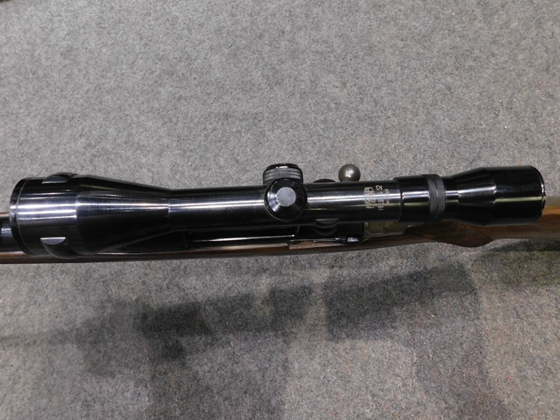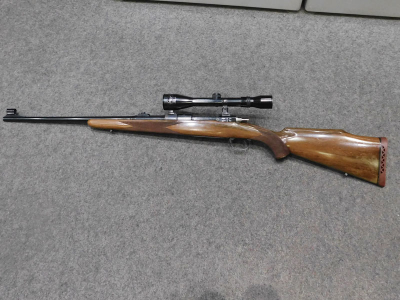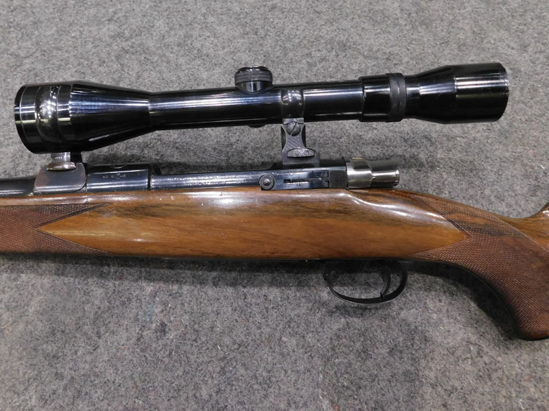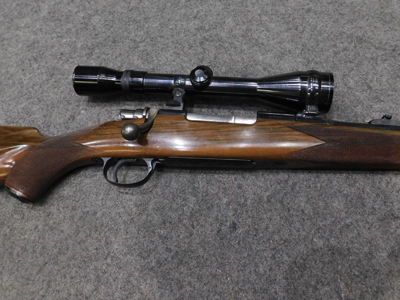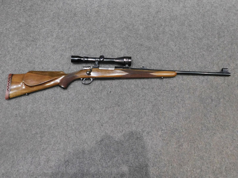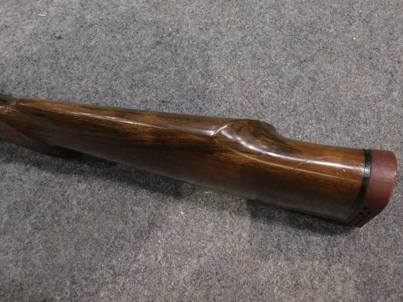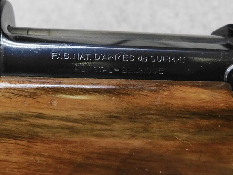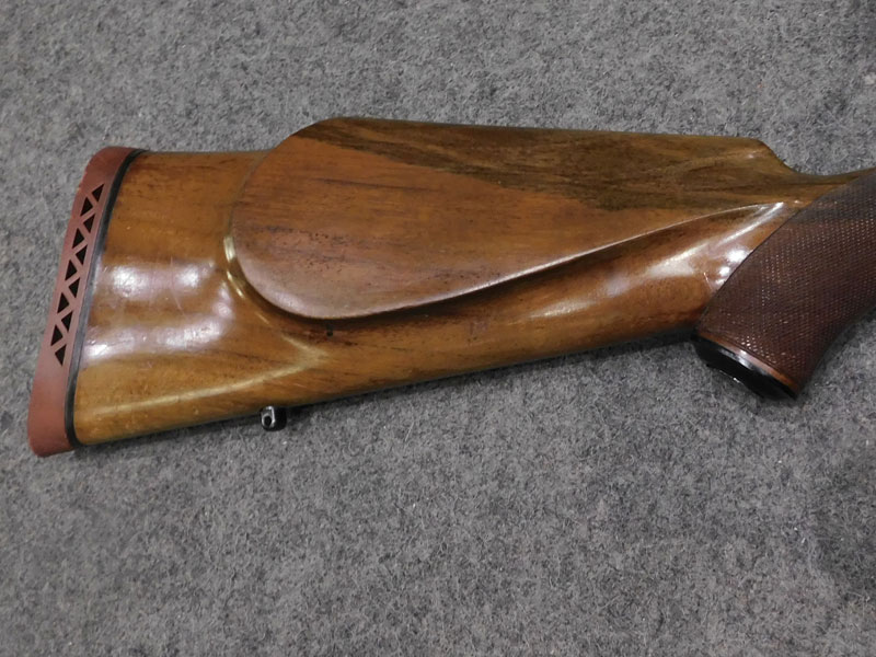 Carabina da caccia usata F.N. Browning (Fabrique Nationale d’Armese de Guerre Herstal Belgique – Browning patent) modello Mauser Sporter – serbatoio quattro colpi calibro 30/06 ridotto a due colpi con blocco facilmente rimovibile – canna 22 pollici (560 mm.) – scatto diretto – calciatura in legno con guancialino mancino (ma tranquillamente imbracciabile anche da destro) predisposta per montaggio magliette portacinghia a sgancio rapido – tacca di mira regolabile a foglietta abbattibile – tunnel proteggi mirino – calciolo in gomma antirinculo non originale – ottica K Kahles Wien modello Helia 6 x montata con attacco a piede di porco – classificata arma da caccia – meccanica e canna in ottime condizioni, segni d’uso sulla calciatura
