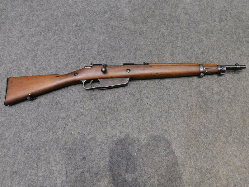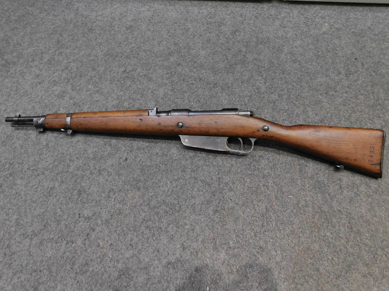 Moschetto Carcano modello 91 TS – calibro 8 x 57 js – senza data e senza produttore – culatta modificata – calcio monomatricola con doppio traversino d rinforzo – condizioni generali molto buone – canna ottima