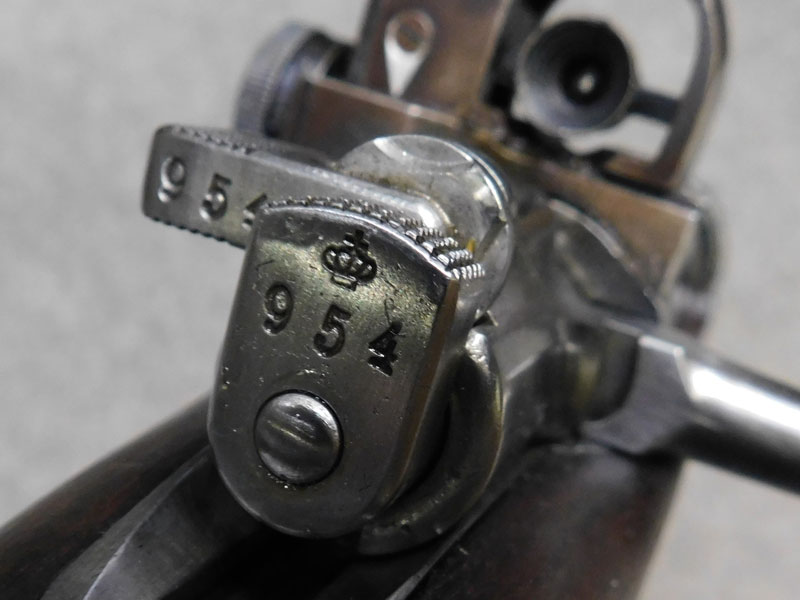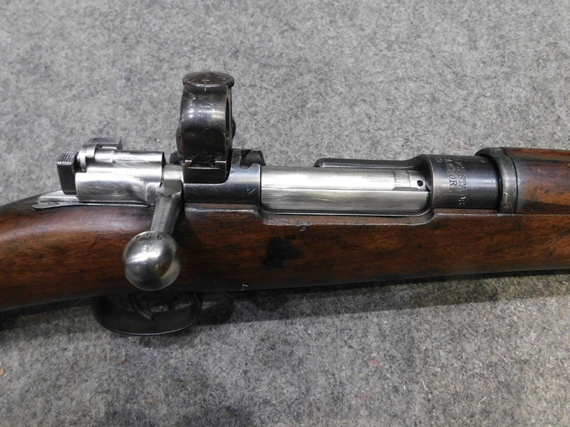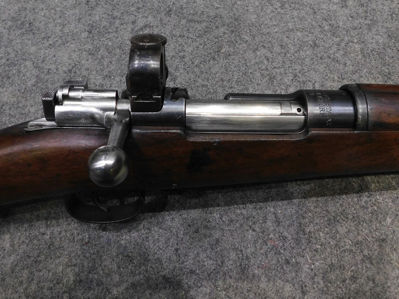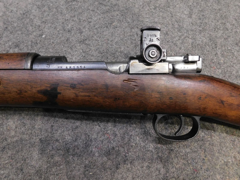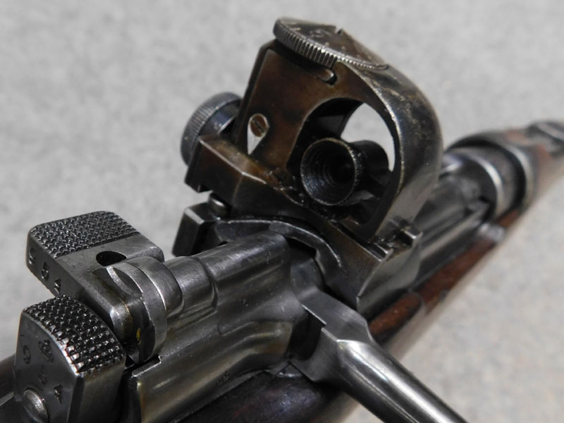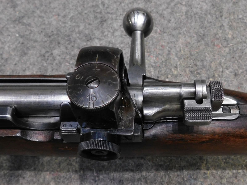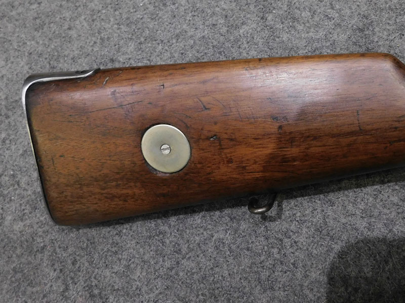 Carabina Carl Gustafs modello 96/38 – calibro 6.5 x 55 – derivato da fucile Carl Gustafs M96 del 1919 – canna filettata con bussola coprifiletto – otturatore e fondello in metallo monomatricola, bacchetta di pulizia no – parti minori con punzone di controllo e accettazione ma senza matricola – mirino alto + 0.5 – diottra Soderin – classificata arma da caccia – condizioni generali molto buone – canna ben spigolata