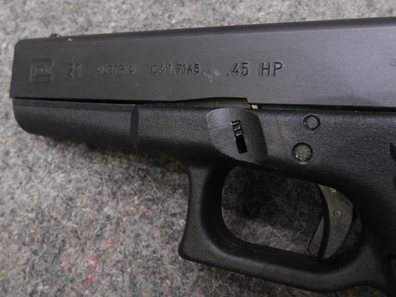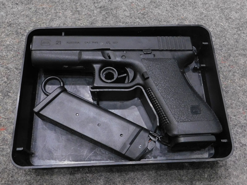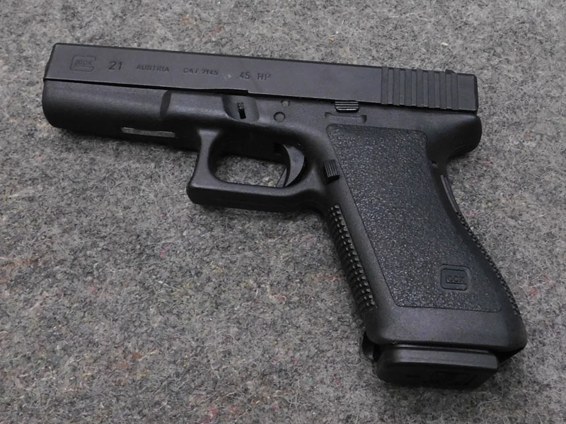 Pistola usata Glock modello 21 – caricatore bifilare 13 colpi calibro 45 HP – seconda generazione Gen2 serie XB del marzo 1992, tra le prime importate in Italia – valigetta primigenia e caricatore di scorta – classificata arma comune – ottime condizioni, leggeri segni di porto – da amatore usato garantito revisionato da armiere certificato Glock!