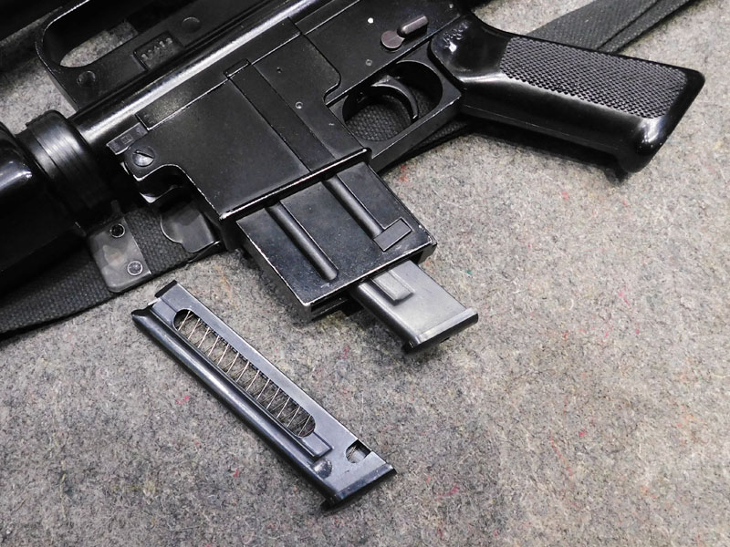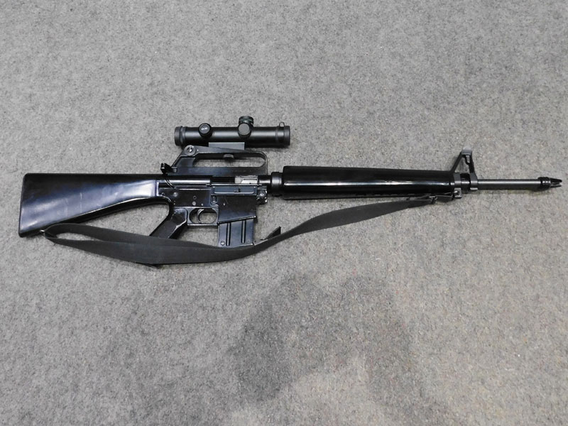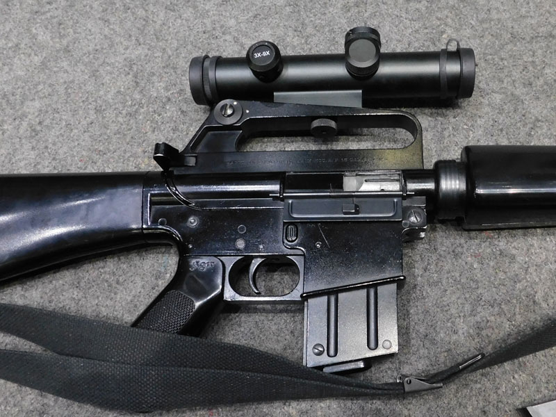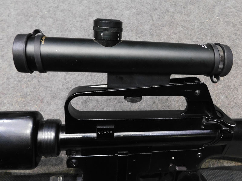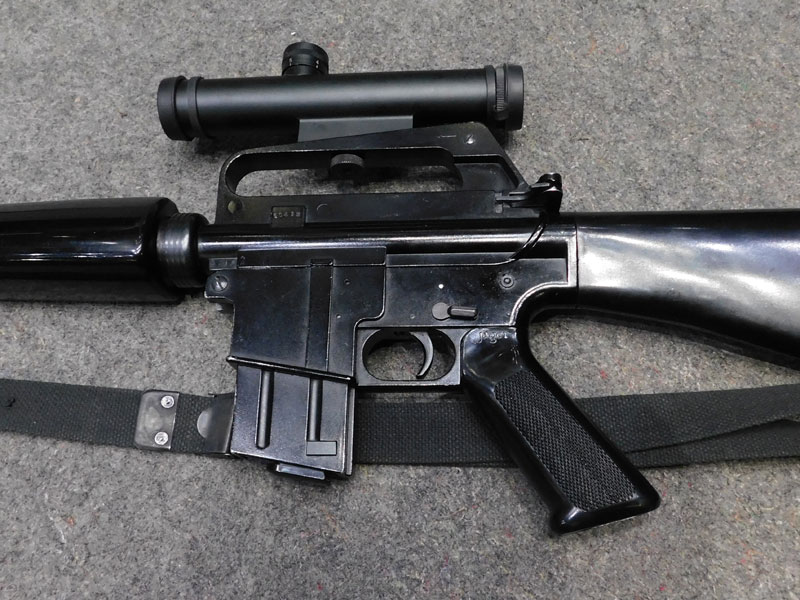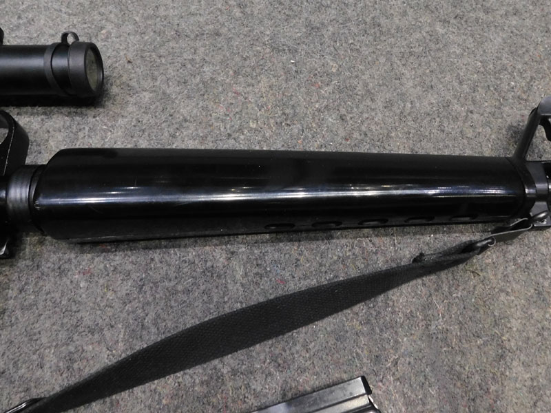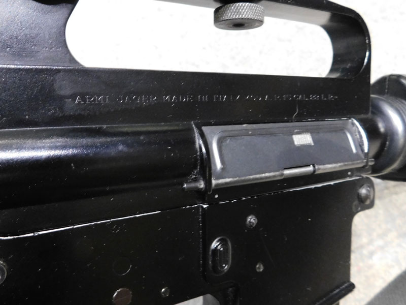 Carabina semiautomatica jager modello AP 74 – calibro 22 l.r. – canna 515 mm. con freno di bocca spegnifiamma – astina sottomano triangolare tipo M16 Vietnam – maniglione di trasporto – fornita con due caricatori, uno da quindici ed uno da venti colpi – cinghia – ottica Leapers 3/9 x 28 con attacco dedicato – classificata arma comune – condizioni generali molto buone