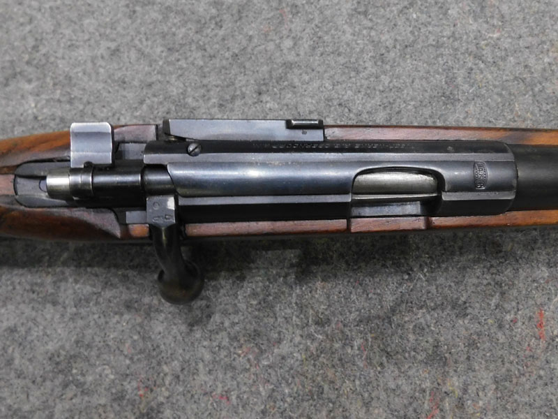 Carabina da tiro a segno Mauser (Mauser Werke AG. Oberndorf a.N.) modello MS350 – caricatore amovibile da 5 colpi calibro 22 l.r. – canna da 678 mm. – tacca di mira regolabile – predisposta per montaggio ottica con scina standard da 11 mm. – calcio e culatta con Mauser Banner – classificata arma comune – condizioni molto buone, calcio con riparazione professionale – canna non a specchio ma ancora ben spigolata
