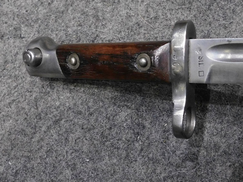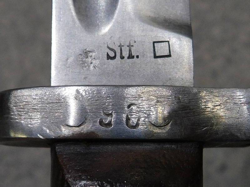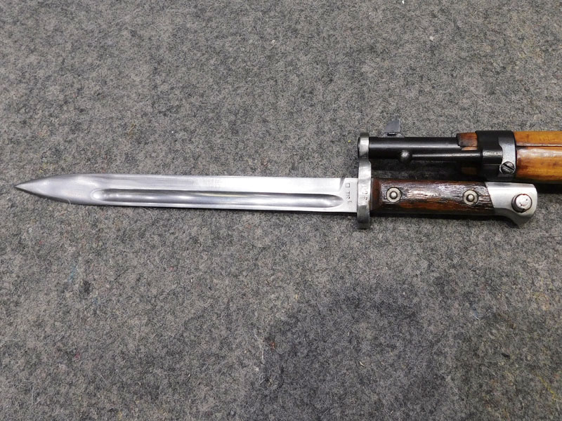 Moschetto austriaco Steyr modello M95 – calibro 8 x 56 r – produttore arsenale ungherese di Budapest – data di produzione coperta dal punzone di modifica calibro “S” (forse 1915?) – cinghia cuoio – baionetta con punzone di controllo e accettazione post prima guerra mondiale marcata “Stf” (Staatsfabrik Vienna, ex Steyr) – marchi di reparto sul tallone, arma n° 97 assegnata alla terza compagnia del 9° Landsturm Infanterie Bataillonen* – taschetta cuoio con timbro a secco “Stolle” – condizioni generali molto buone – canna ben spigolata