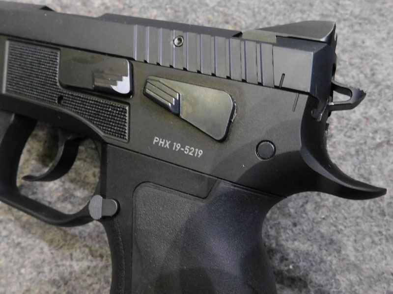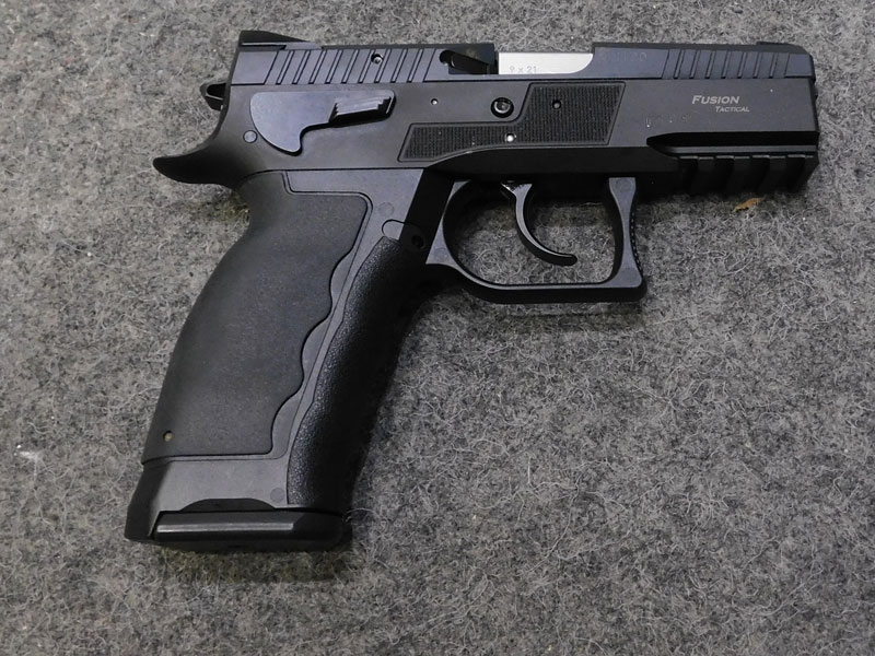 pistola semiautomatica sportiva usata Phoenix AG modello Fusion Tactical – caricatore bifilare 15 colpi calibro 9 x 21 – fusto in lega leggera e polimeri con attacco integrato per montaggio torcia o laser – doppia azione con abbattimento del cane – sicura ambidestra – canna 94 mm. – tacca di mira tattica fissa – mirino con dot ad alta visibilità – fornita con borsetta di trasporto in cordura, caricatore di scorta e libretto istruzioni – prodotta in Svizzera – classificata arma sportiva – condizioni molto buone
