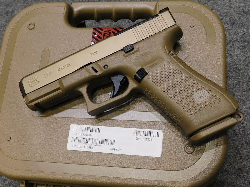 Pistola Glock modello 19 X Gen MOS (Modular Optic System) Gen 5 – caricatore bifilare 17 colpi calibro 9 x 19 (9 luger o 9 parabellum) –fornita con un caricatore da 17 colpi e due caricatori da 19 colpi, set dorsalini, valigetta in colorazione FDE – classificata arma comune – ordine speciale fuori catalogo Glock – pochissimi pezzi importati