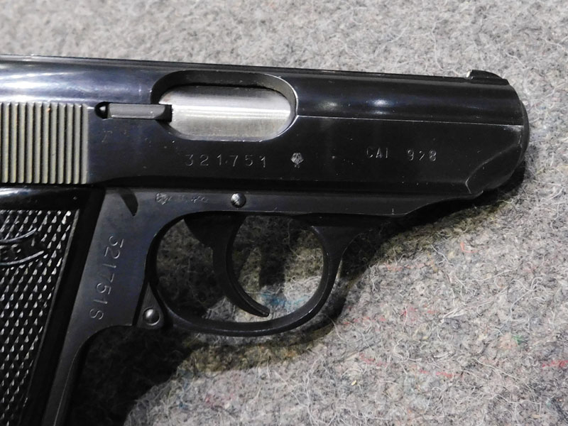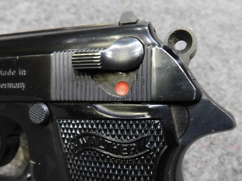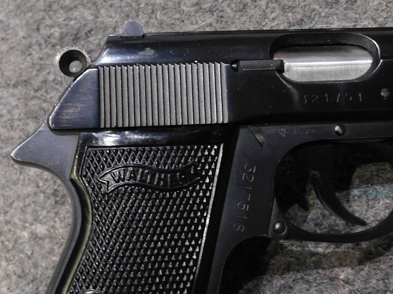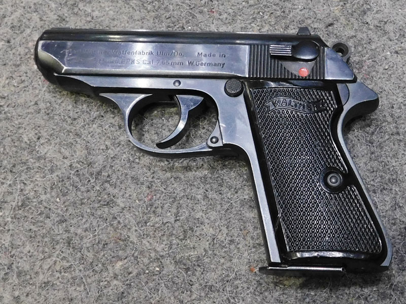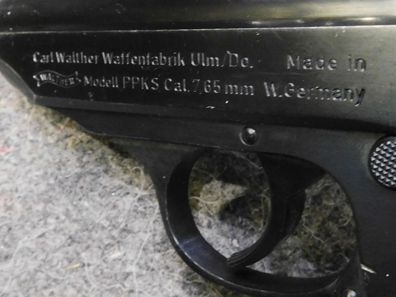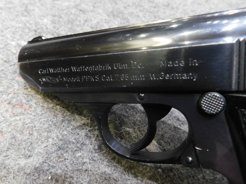 Pistola usata Walther (Carl Walther Waffenfabrik Ulm/Do) modello PPK/S – caricature monofilare 8 colpi calibro 7.65 – canna 83 mm. – fusto in acciaio – doppia azione con abbattimento del cane – indicatore di colpo camerato – guancette nere – scritta made in W. Germany – anno 1982 – classificata arma comune – meccanica e canna in ottime condizioni, segni di porto