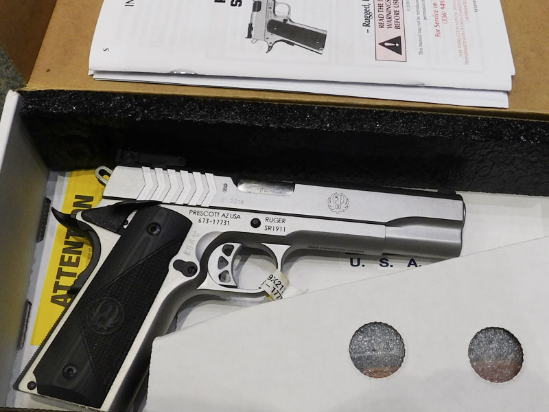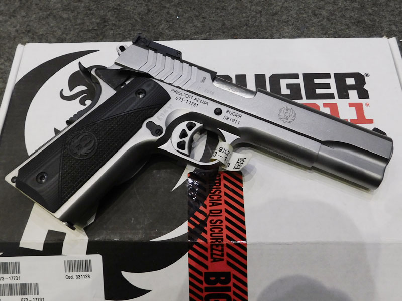 Pistola sportiva Ruger modello SR 1911 – caricatore monofilare 9 colpi calibro 9 x 21 – fusto in acciaio – canna pesante bull barrel da 5 pollici (127 mm.) – singola azione – tacca di mira regolabile – sicura ambidestra – grilletto scheletrato in alluminio con trigger stop – cane match – percussore in titanio – guancette in G10 – fornita con secondo caricatore e lucchetto di sicurezza – classificata arma sportiva – listino Bignami 2025: 1599,00 ultimi pezzi in promozione – offerta valida sino ad esaurimento scorte