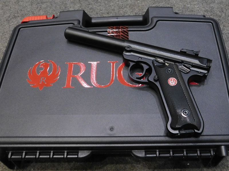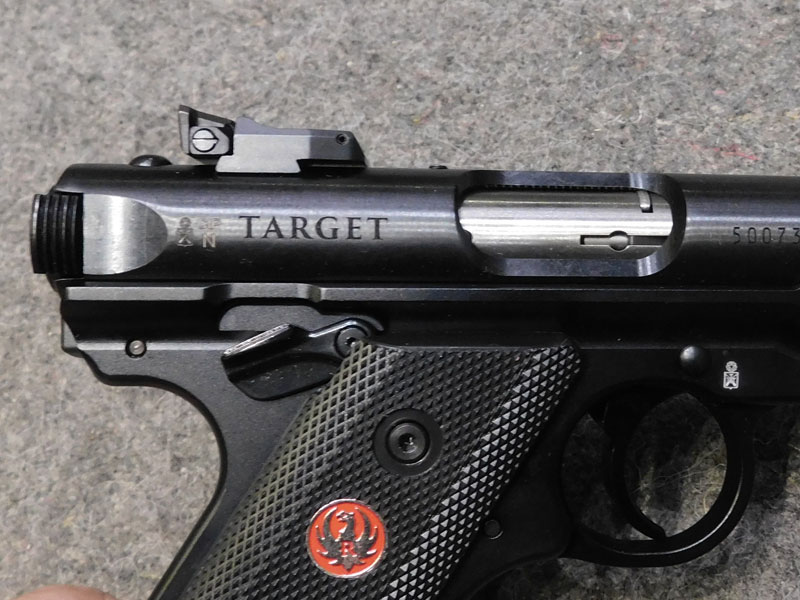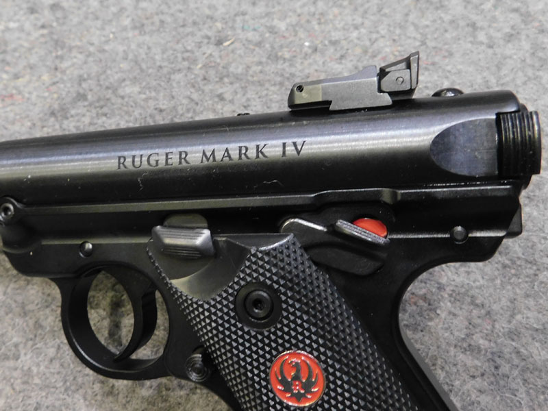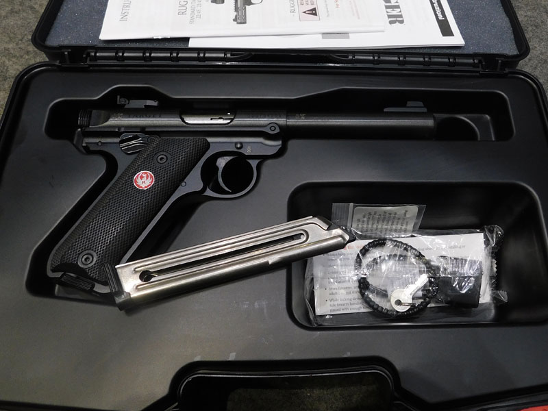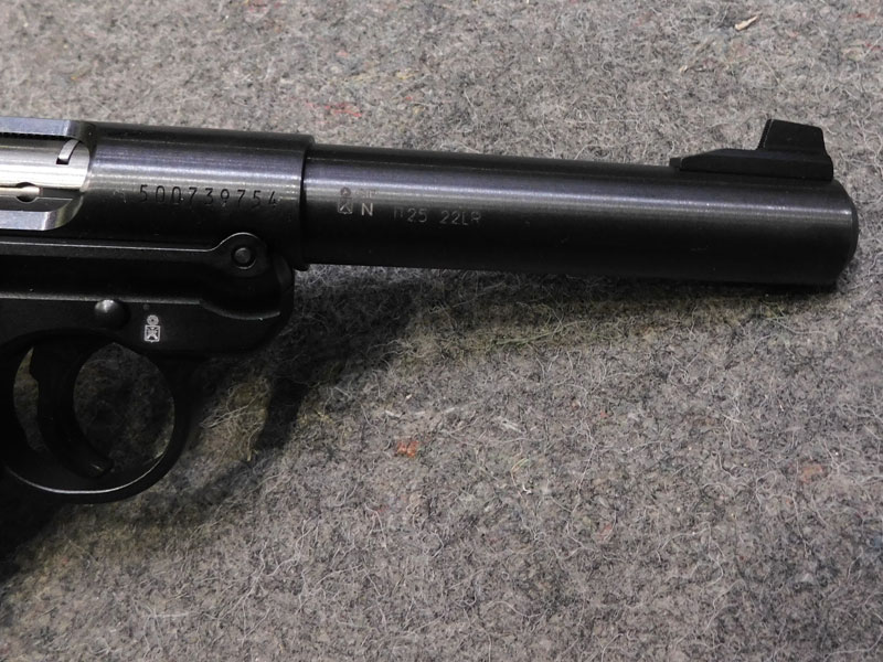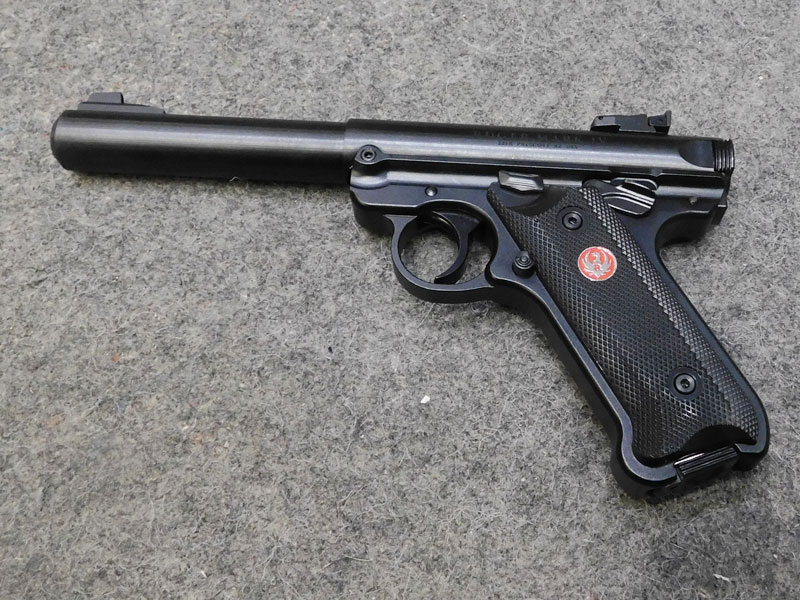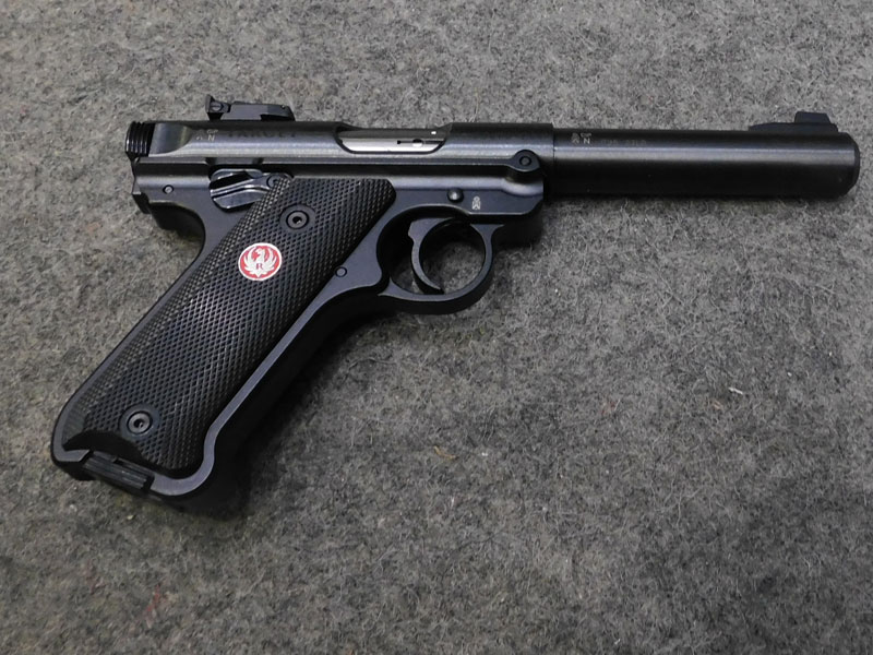 Pistola sportiva Ruger modello MK IV Target – caricatore monofilare 10 colpi calibro 22 l.r. – canna pesante bull barrel tonda da 5 ½ pollici (140 mm.) – tacca di mira regolabile – sicura ambidestra – guancette plastica – fornita con valigetta, caricatore di scorta, istruzioni e lucchetto di sicurezza – classificata arma sportiva