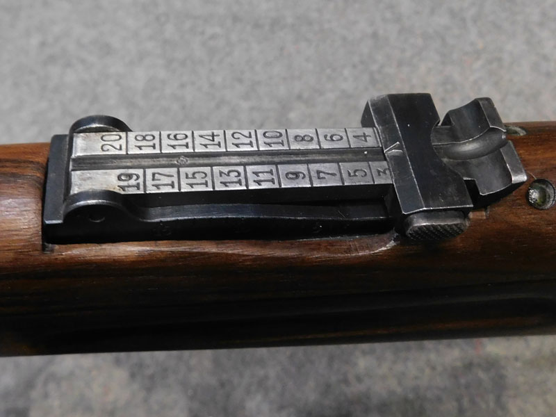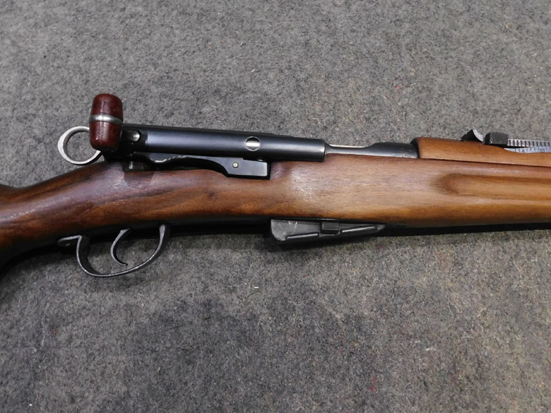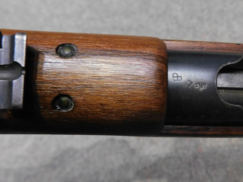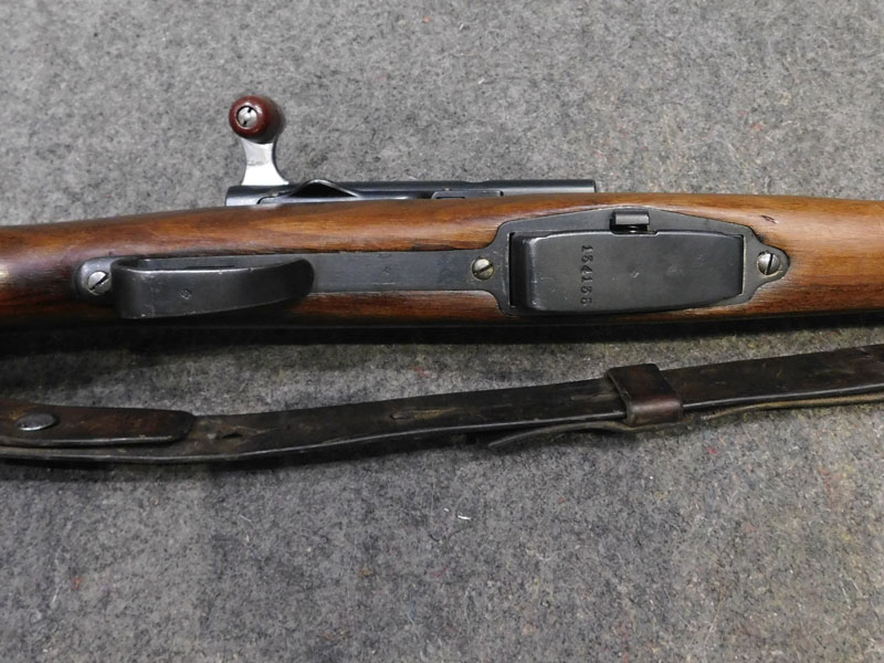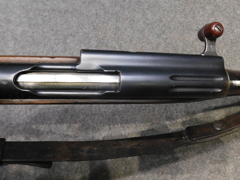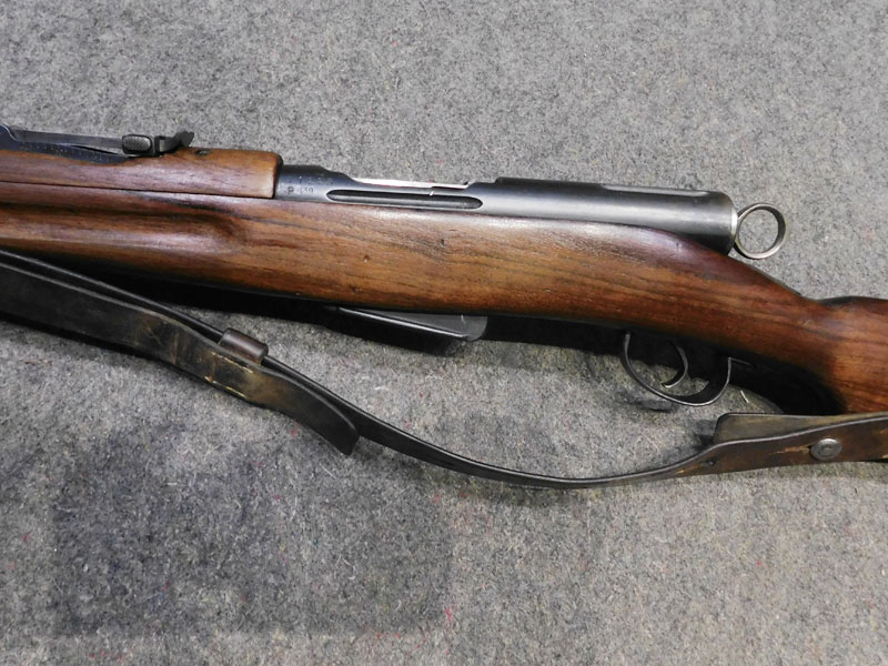 Moschetto svizzero W+F (Eidgenossische Waffenfabrik Bern) modello Rubin Schmidt K 11 (Schweizerisches Karabiner modell 1911) – caricatore 6 colpi calibro 7.5 x 55 GP11 – monomatricola tranne la tacca di mira – anno 1916 – canna Hammerli – cinghia cuoio e coprivolata originali – ottime condizioni generali– canna ottima/eccellente