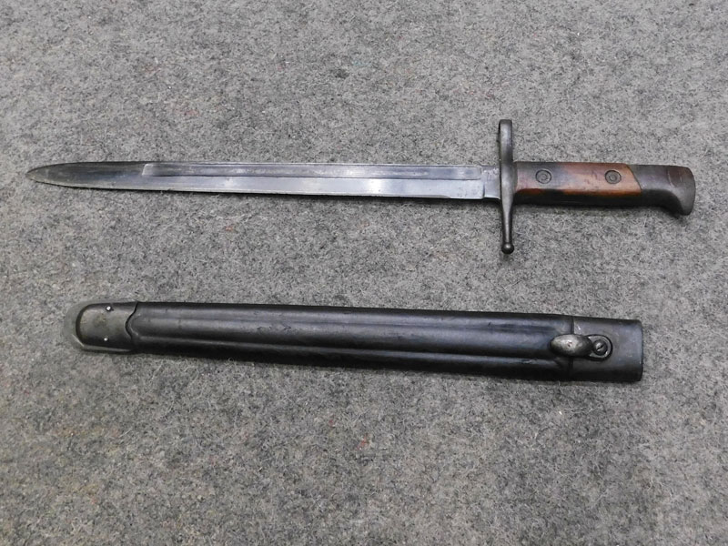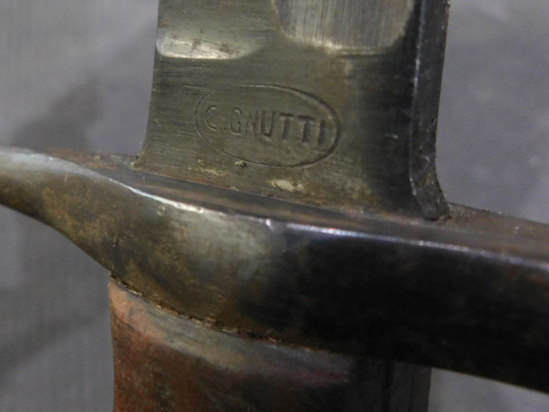 Baionetta per fucile Carcano 91 – produttore C Gnutti – senza data e senza matricola – fodero con finimenti in ferro verniciati marcato C Gnutti 1941 – condizioni generali molto buone, migliorabili con un’accurata pulizia N.B.: necessita porto armi e non è possibile la spedizione diretta a privati