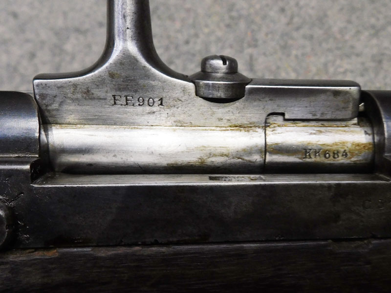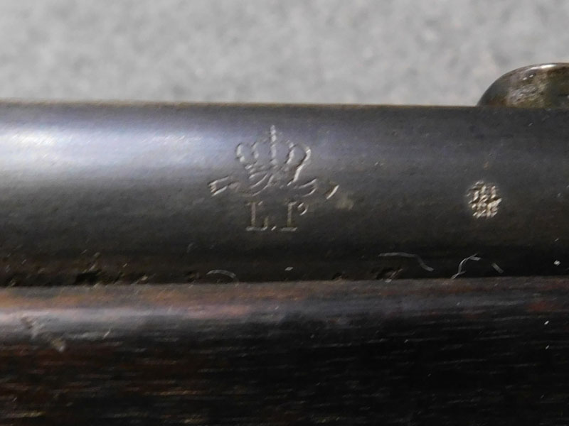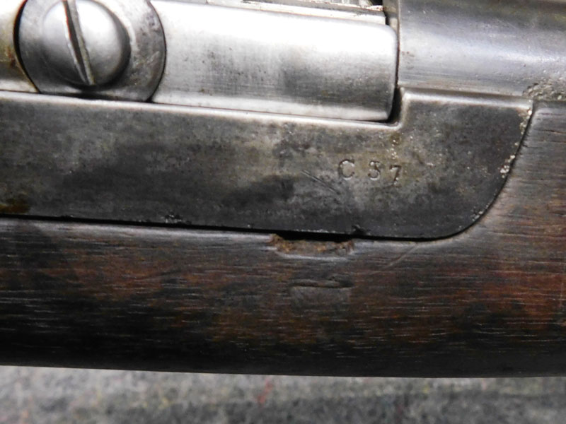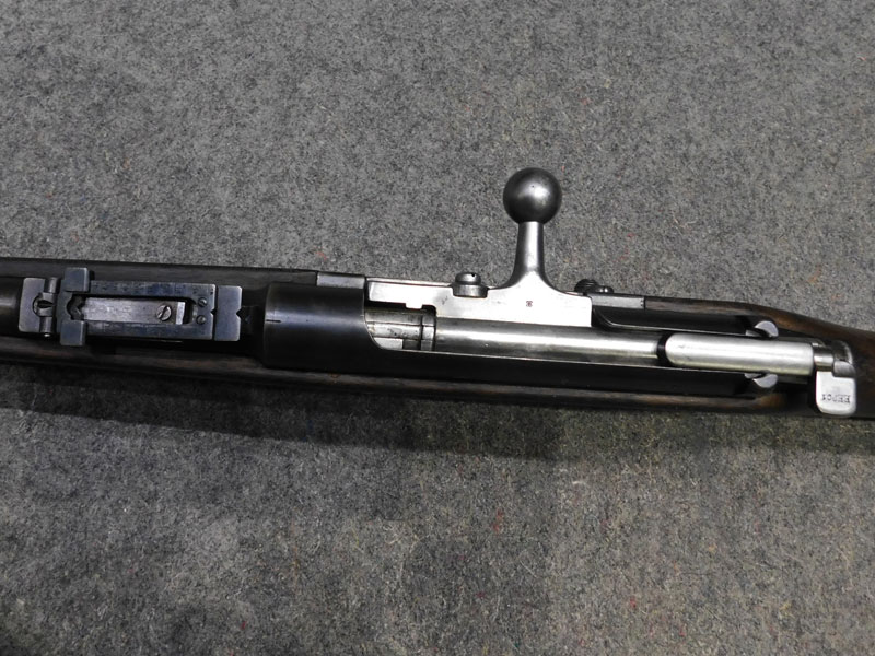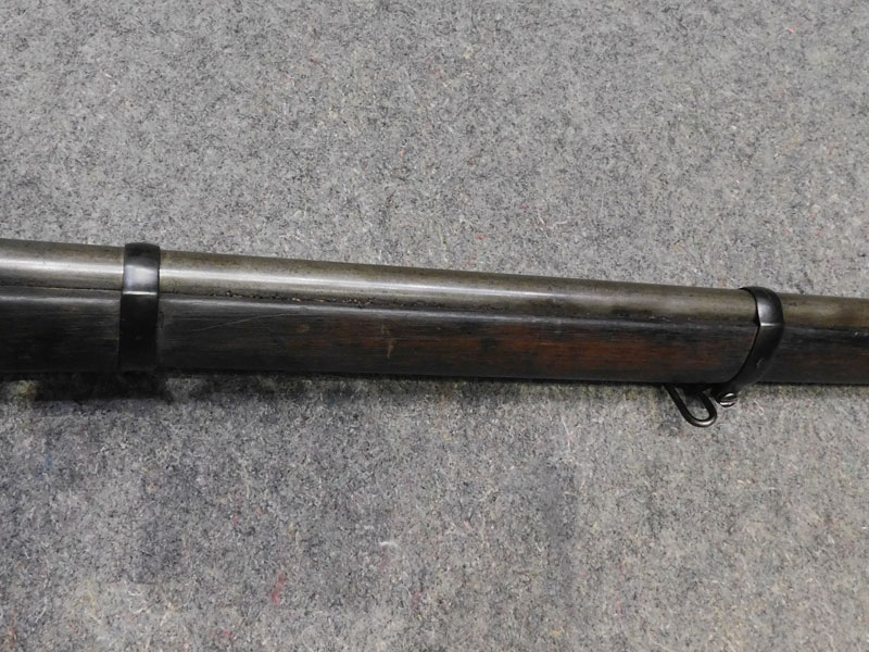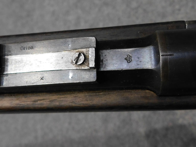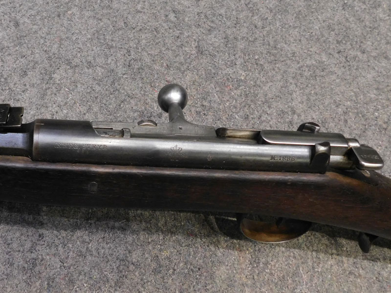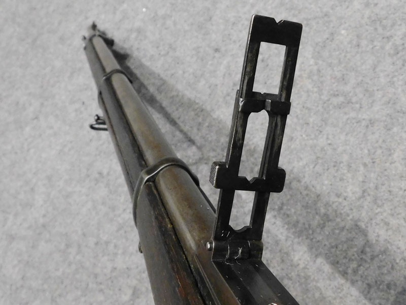 fucile ex ordinanza portoghese OE.W.F.G. Steyr (Osterreischische Waffenfabriks Gesellschaft Steyr) modello 1886 Kropatschek – serbatoio 8 colpi calibro 8x60R –canna 820 mm. – canna, culatta e calcio monomatricola, otturatore no – anno 1886 – punzone Luigi I° – calciatura riparata in arsenale con cartiglio Luigi I° leggibile e cartiglio OEGW parzialmente leggibile – cut off – prima serie senza astina copricanna – solo 49 mila pezzi prodotti – condizioni generali molto buone – canna ancora ben spigolata -classificata arma antica