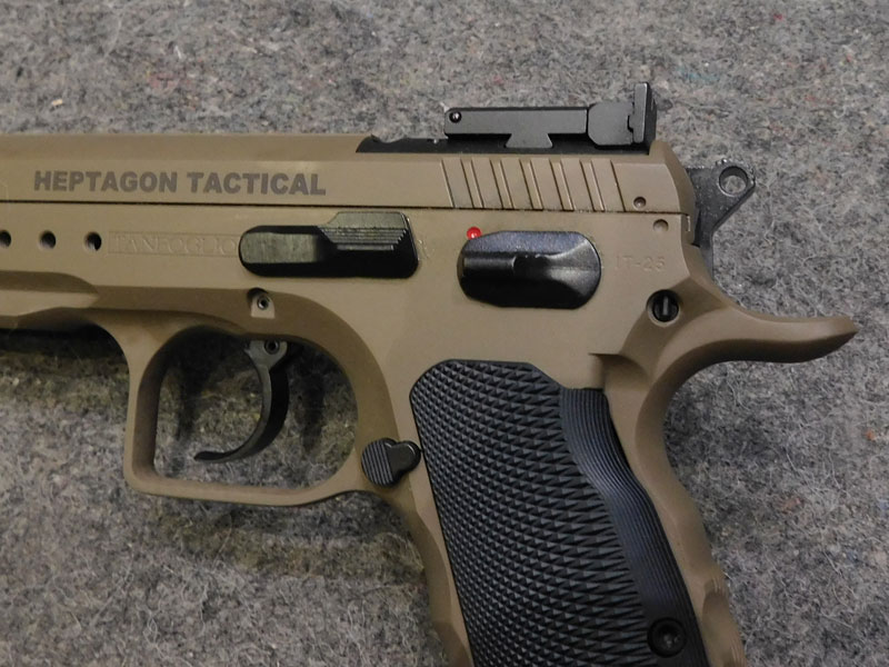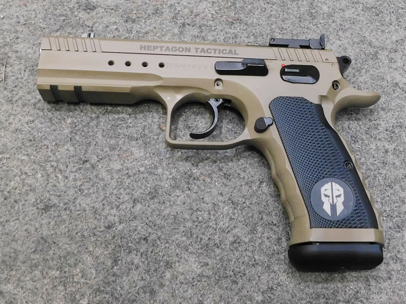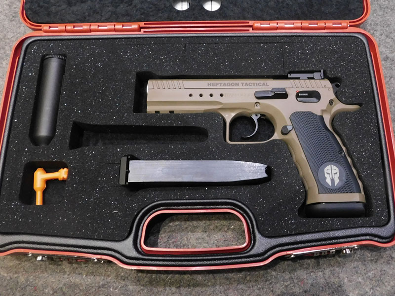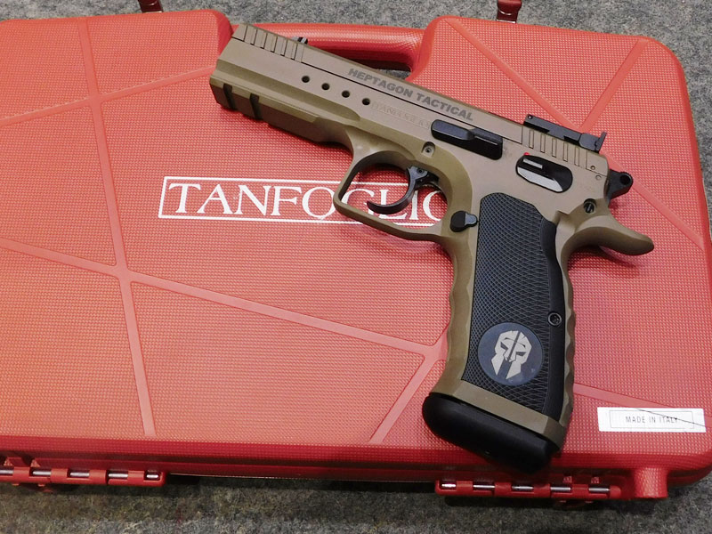 Pistola usata Tanfoglio modello Heptagon Tactical – caricatore bifilare 17 colpi calibro 9 x 19 – canna pesante bull barrel da 125 mm. con volata ribassata – foro di compensazione antirinculo – rigatura poligonale – fusto K in acciaio con attacco integrato per montaggio torcia tattica o puntatore laser e forato per montaggio attacco laterale adatto a punto rosso red dot – optic ready: predisposta per montaggio punto rosso red dot con piastrine – doppia azione senza abbattimento del cane – finitura Cerakote FDE – tacca di mira LPA regolabile – possibilità montaggio mirino con inserto in fibra ottica – guancette in alluminio – Dotazione originale: valigetta in abs con logo Tanfoglio e chiusure di sicurezza a combinazione, caricatore di scorta, kit di pulizia, istruzioni – classificata arma comune – novità EOS 2025 – condizioni eccellenti, solo provata – vero affare