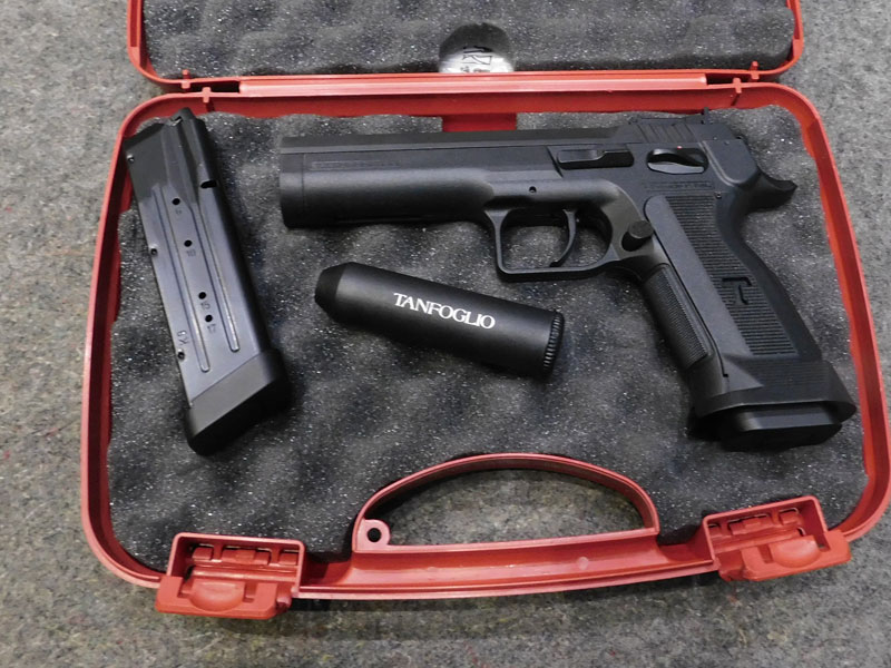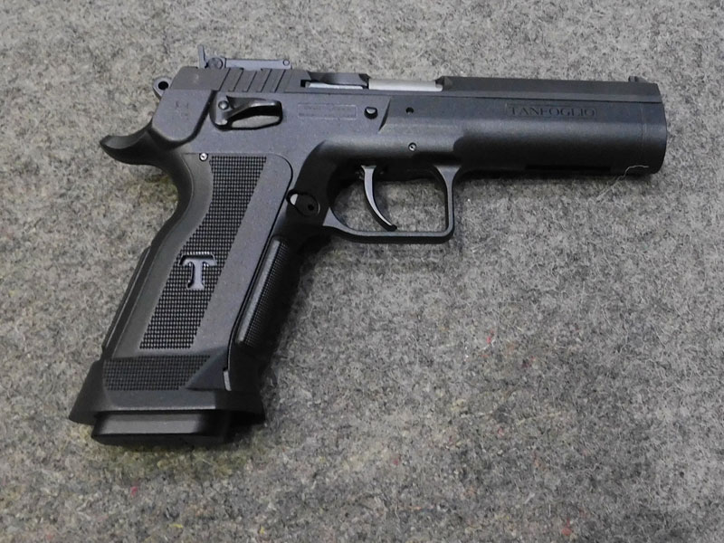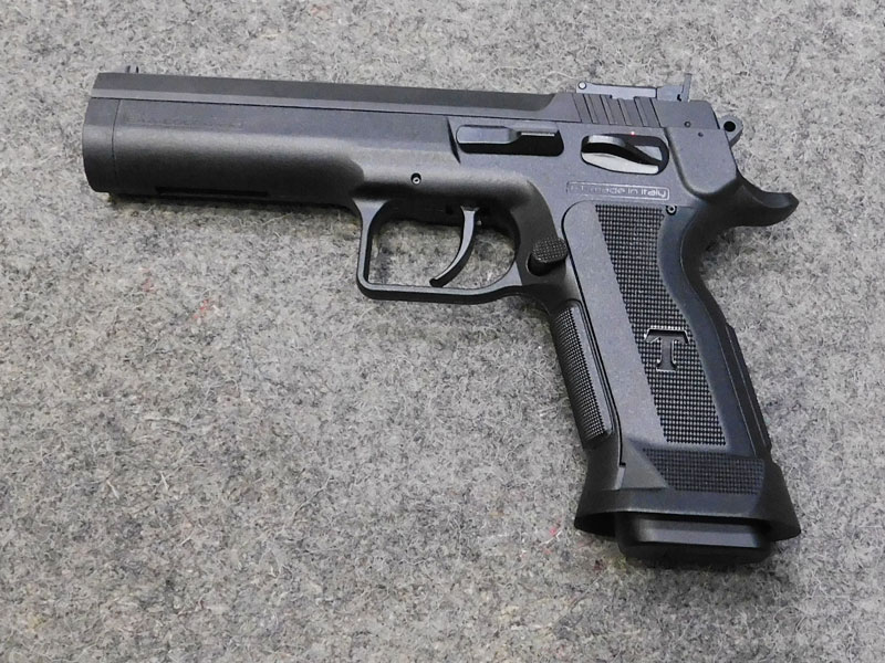 pistola sportiva usata Tanfoglio modello Limited Custom P – caricatore bifilare 19 colpi calibro 9 x 21 – fusto lungo dust cover in tecno polimeri con minigonna integrata – singola azione – canna Lothar Walther da 121 mm con rigatura tradizionale – tacca di mira regolabile – sicura ambidestra – sgancio caricatore maggiorato – peso totale 1030 grammi – dotazione originale: valigetta, caricatore di scorta e kit di pulizia – classificata arma sportiva – condizioni eccellenti, solo provata – vero affare