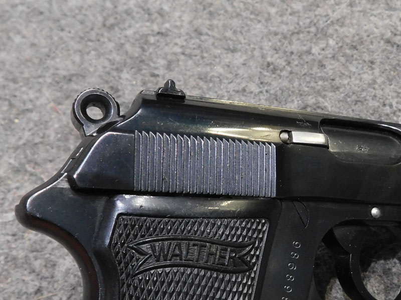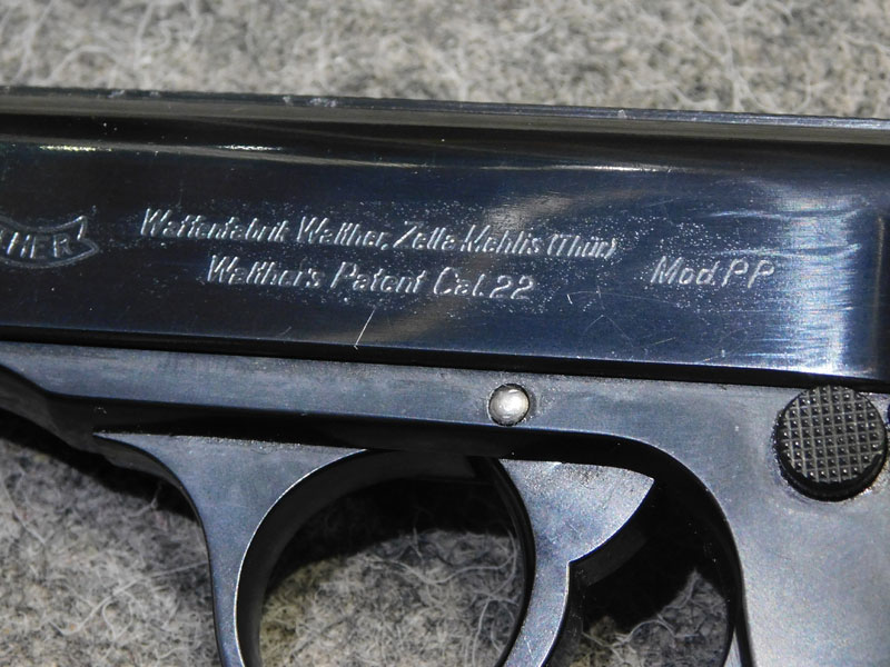 Pistola Walther Zella Mehlis Thur modello PP – caricatore monofilare 8 colpi calibro 22 l.r. – canna 98 mm. – fusto in acciaio – doppia azione con abbattimento del cane – punzone civile di collaudo “N coronata” – prodotta nei primissimi mesi del 1938, tra i primi esemplari a montare la sicura a 60 gradi – caricatore non marcato – classificata arma comune – ribrunita in ottime condizioni – canna ottima