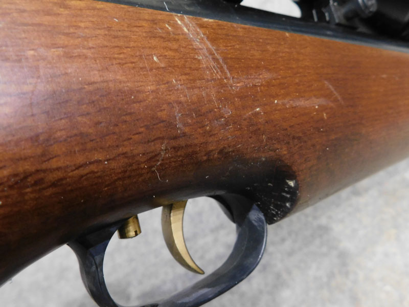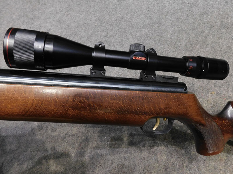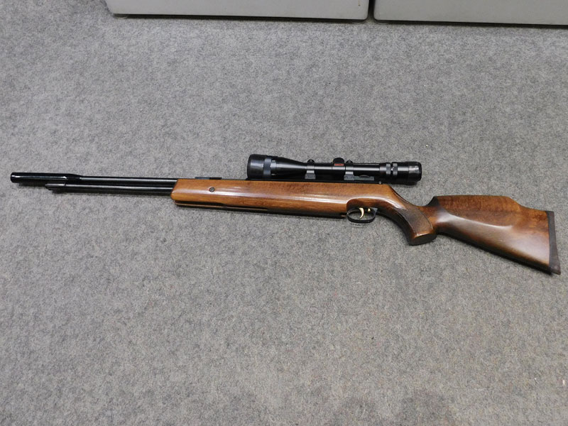 Carabina ad aria compressa usata Weihrauch modello HW 977 – calibro 4.5 – canna fissa da 370mm. – caricamento a leva inferiore – calciatura in legno con guancialino Montecarlo – scatto regolabile Rekord – non predisposta per montaggi mire metalliche – ottica Simmons Deerfield 4/12 x 40 con regolazione parallasse anteriore – blocco antislittamento dell’ottica originale Weihrauch – full power, circa 19 joules – classificata arma sportiva (necessita porto armi) – ottime condizioni generali, graffi come da foto